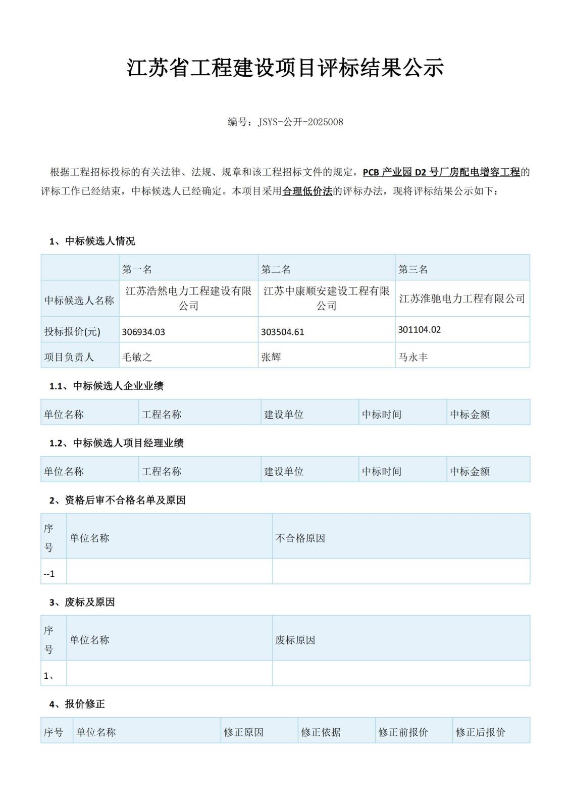江蘇省工程建設項目評標結果公示